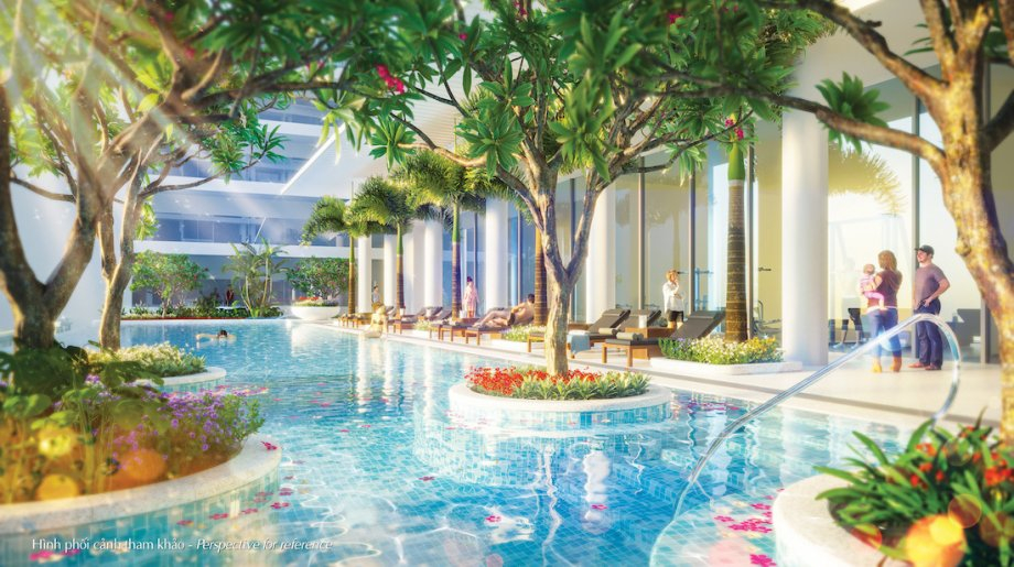 On the land area of 56,331m2, the complex consists of 4 condo buildings with different designs, each building owns an international standard amenity chain such as swimming pool, sauna, massage room, gym room, multi-function room, kids library… Especially, the high-quality F&B and entertainment services are integrated under each building meeting the needs of residents here.